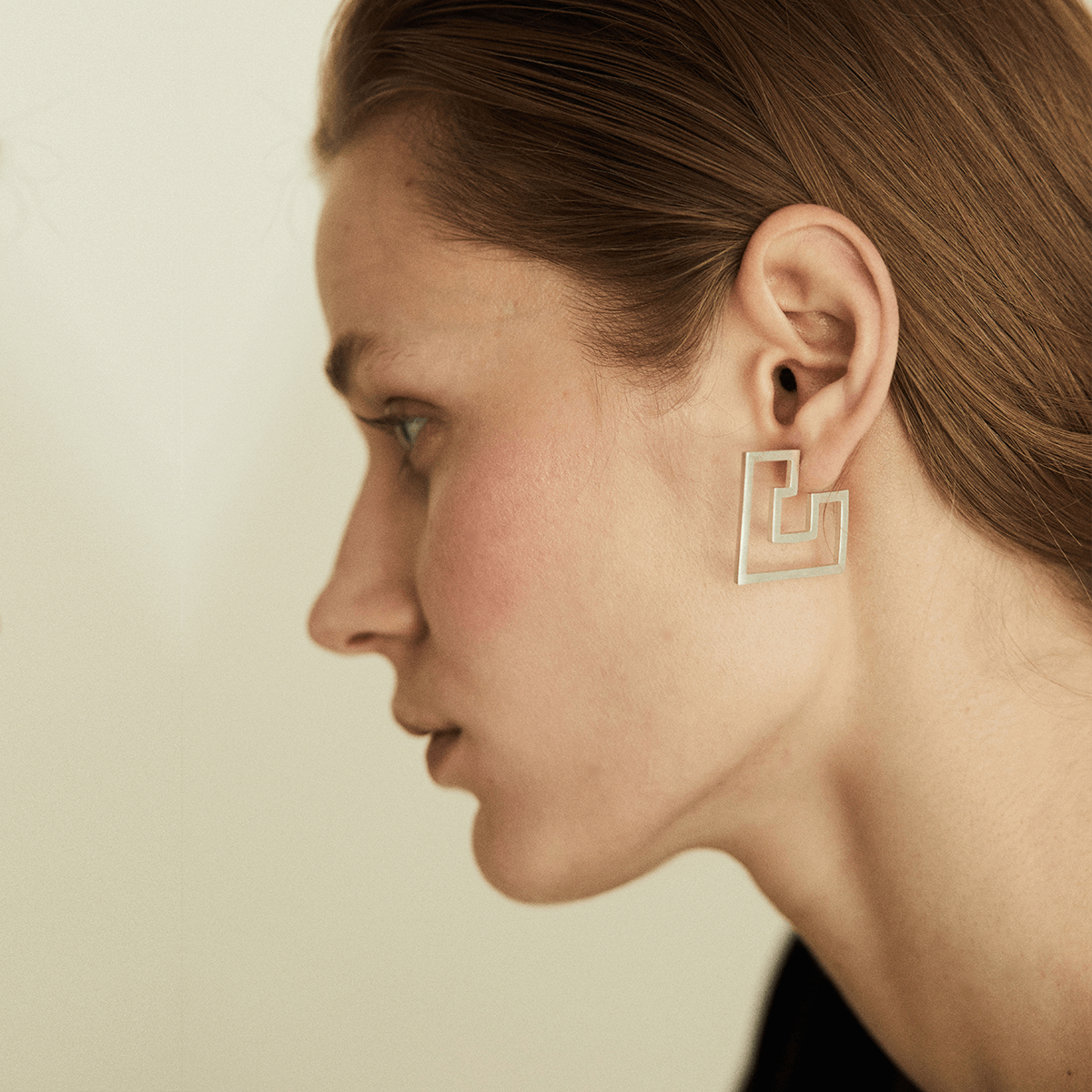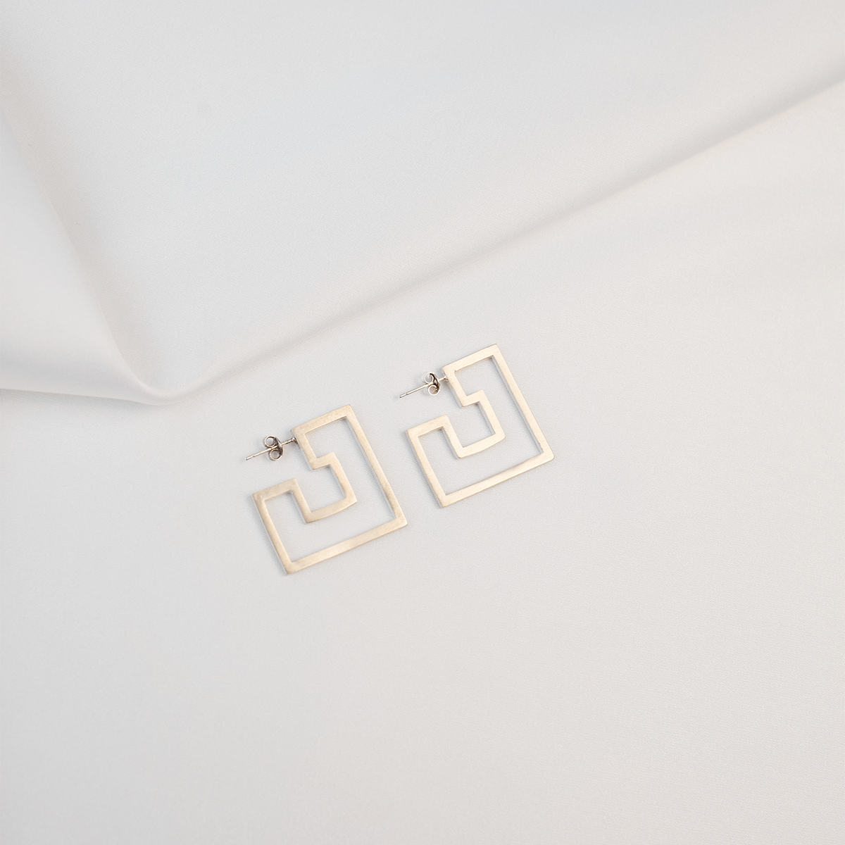 Labyrinth Introspect Empty Square Minimal Earrings, Handmade by Monom