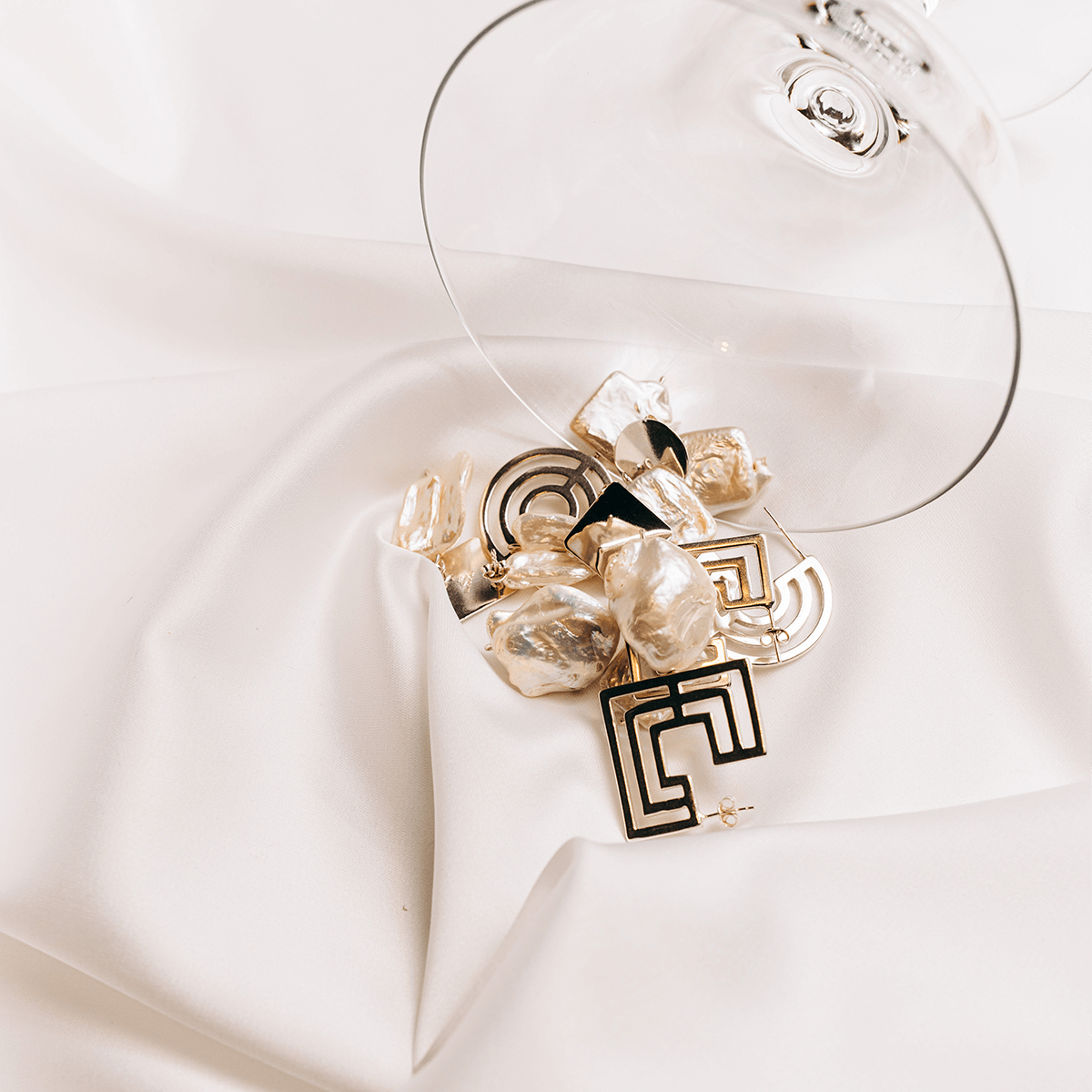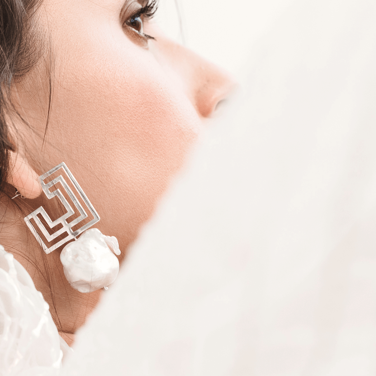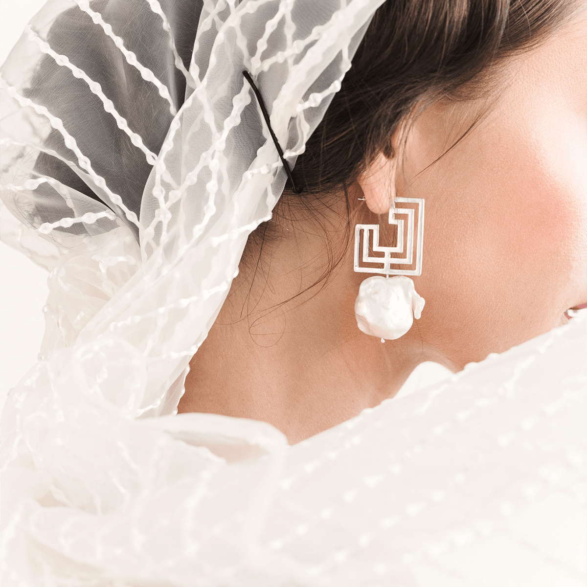 EXTROVERT square Hoops pearl earrings  Minimalist, handcrafted - Monom